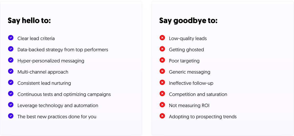 Choosing a cold outreach agency is the matter of the highest responsibility. Find out whether our offer and your expectations synergize.